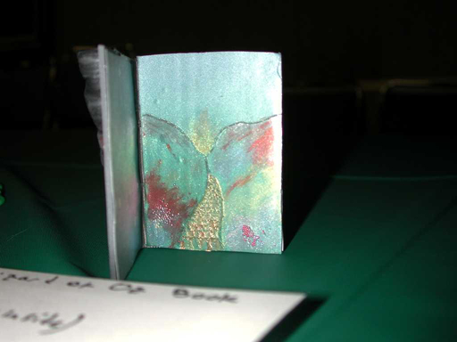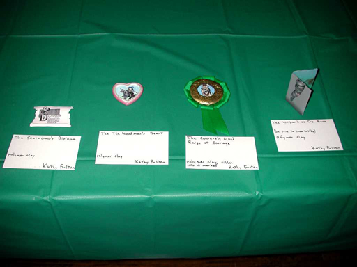 Art contest: Kathy Fulton's four items Art contest: Kathy Fulton's Oz "book" (inside) Art contest: Kathy Fulton's Oz "book" (cover) Art contest: Tik-Tok ornament" Art contest: Nome King wearing the Emerald City (carving)